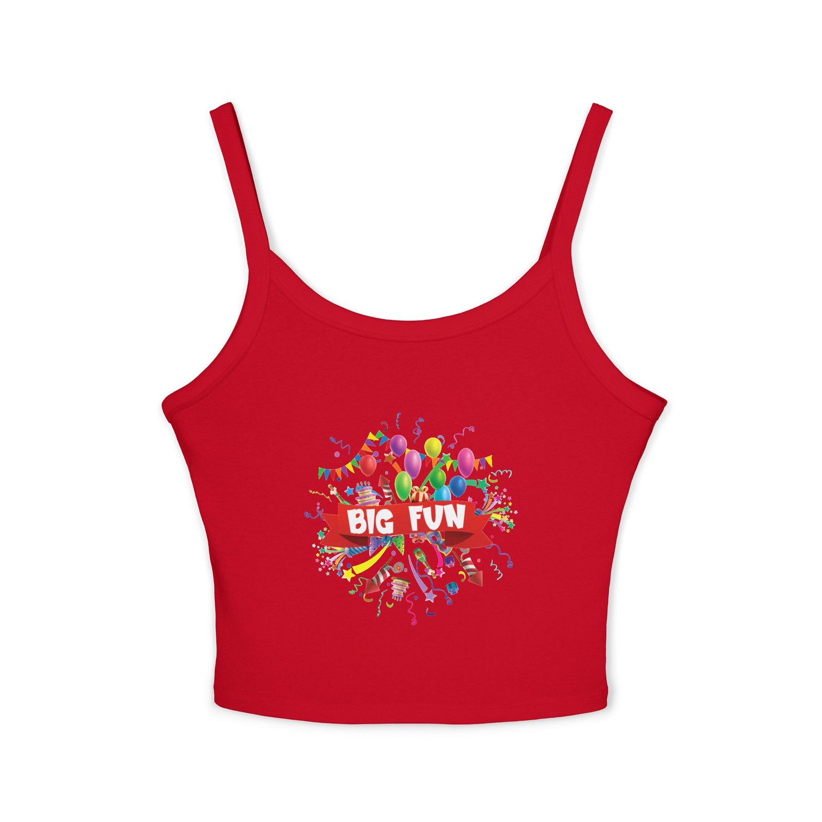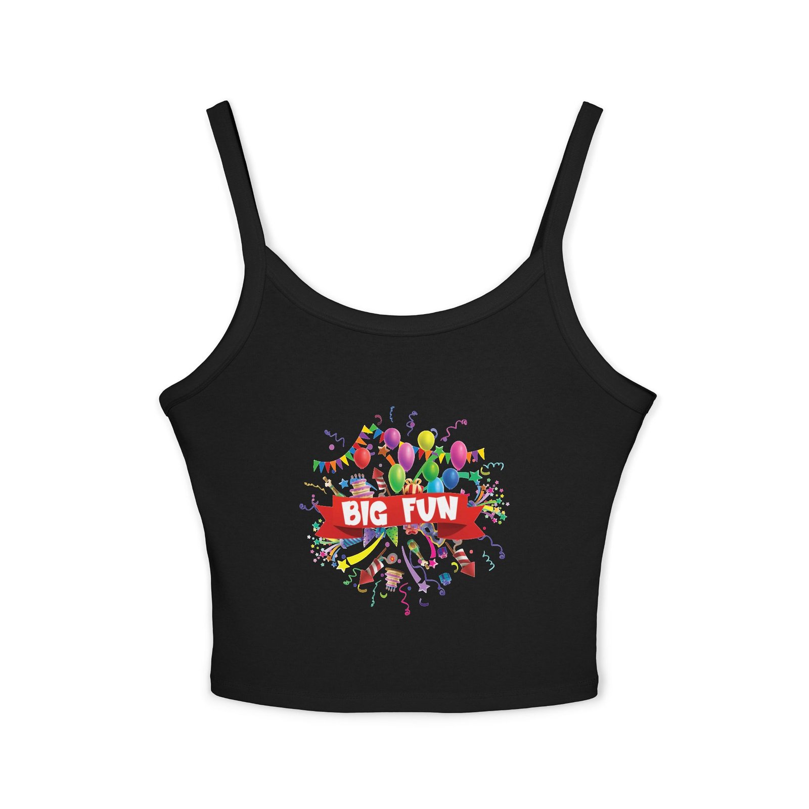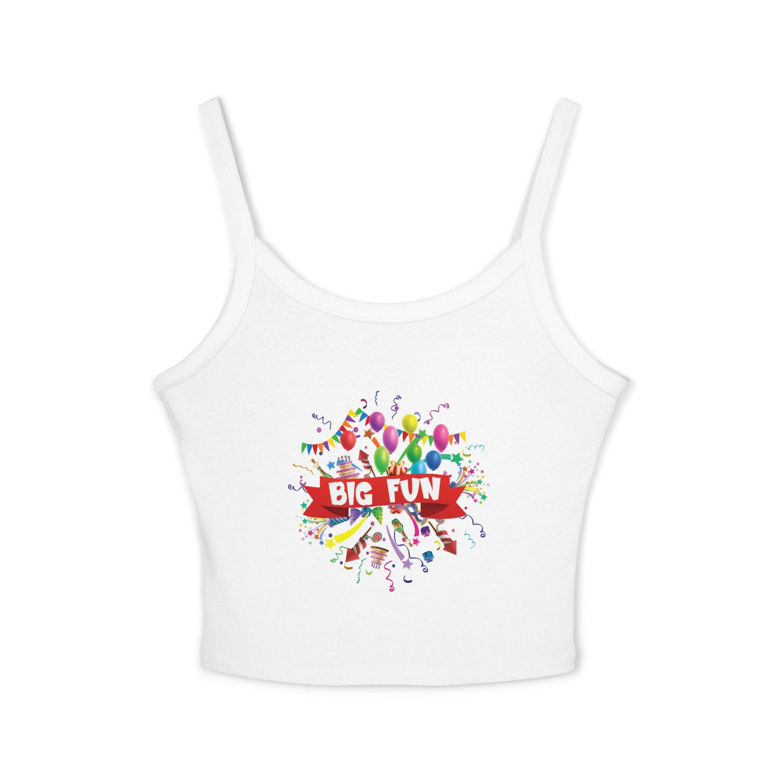 Introducing our fabulous Women’s Big Fun Spaghetti Strap Tank Top! This vibrant and playful tank top is perfect for adding a pop of fun to your summer wardrobe. With a delightful design featuring balloons and confetti, it’s ideal for celebrations, parties, or casual outings. The soft fabric and comfortable fit make it easy to wear all day long, whether lounging at home or dancing the night away. Targeted towards fashion-forward adults who appreciate comfort and style, this tank top is perfect for birthdays, festivals, and festive occasions. Embrace the joy of dressing up and celebrate life’s special moments in style! Just remember to Wear It Good.