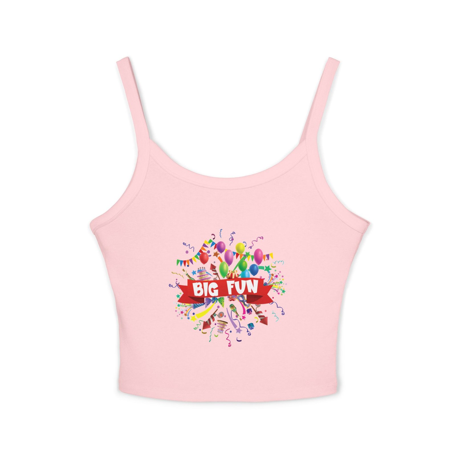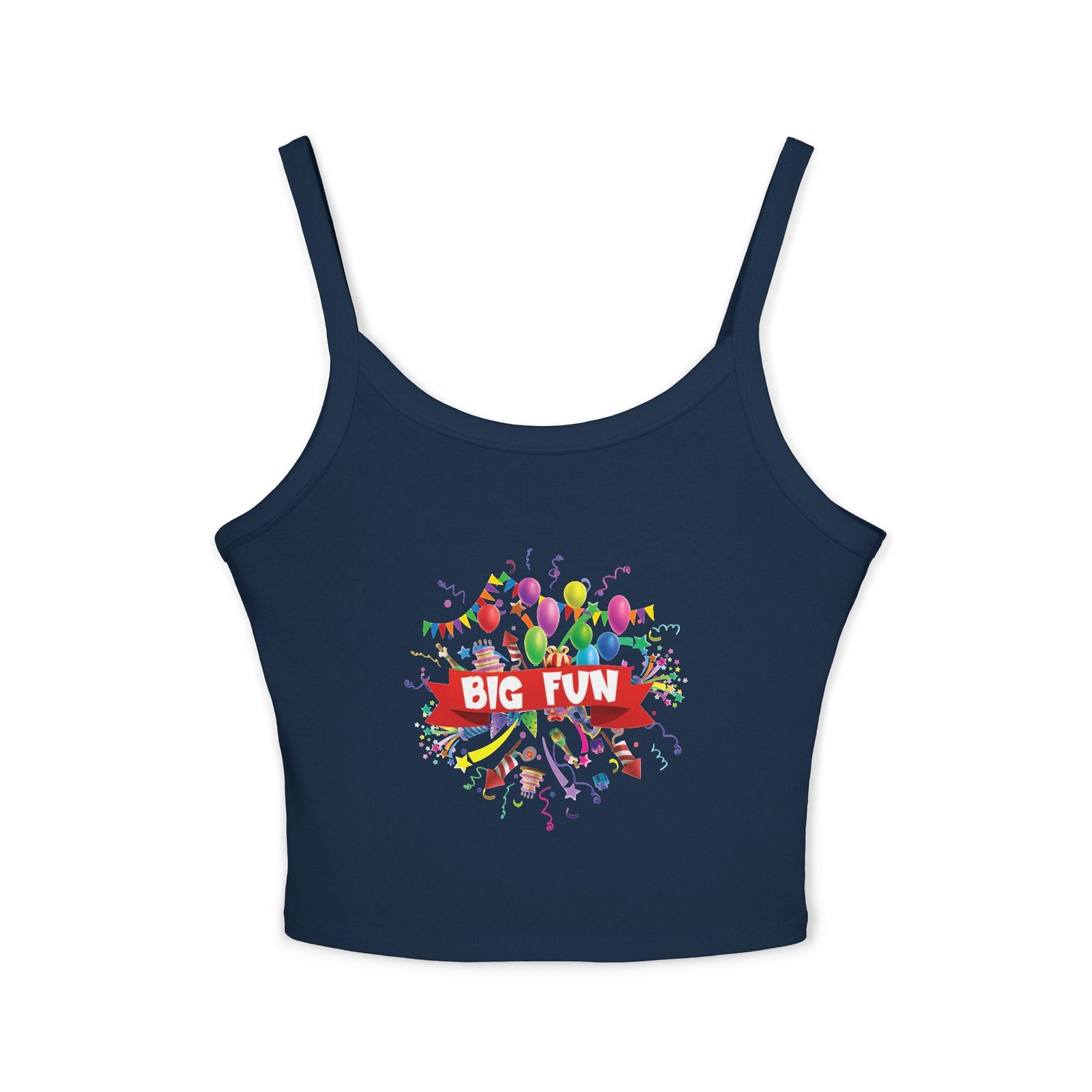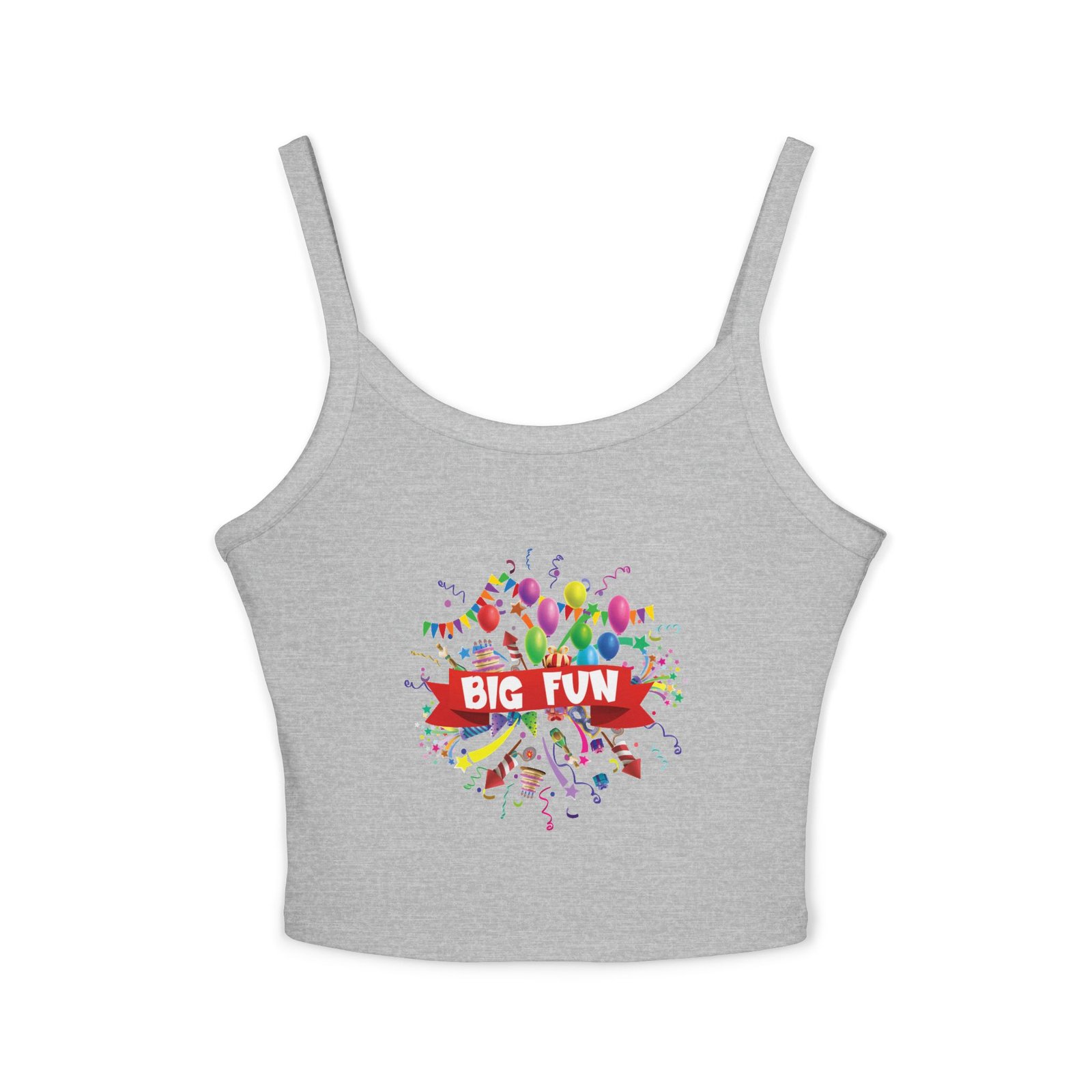 Introducing our fabulous Women’s Big Fun Spaghetti Strap Tank Top! This vibrant and playful tank top is perfect for adding a pop of fun to your summer wardrobe. With a delightful design featuring balloons and confetti, it’s ideal for celebrations, parties, or casual outings. The soft fabric and comfortable fit make it easy to wear all day long, whether lounging at home or dancing the night away. Targeted towards fashion-forward adults who appreciate comfort and style, this tank top is perfect for birthdays, festivals, and festive occasions. Embrace the joy of dressing up and celebrate life’s special moments in style! Just remember to Wear It Good.