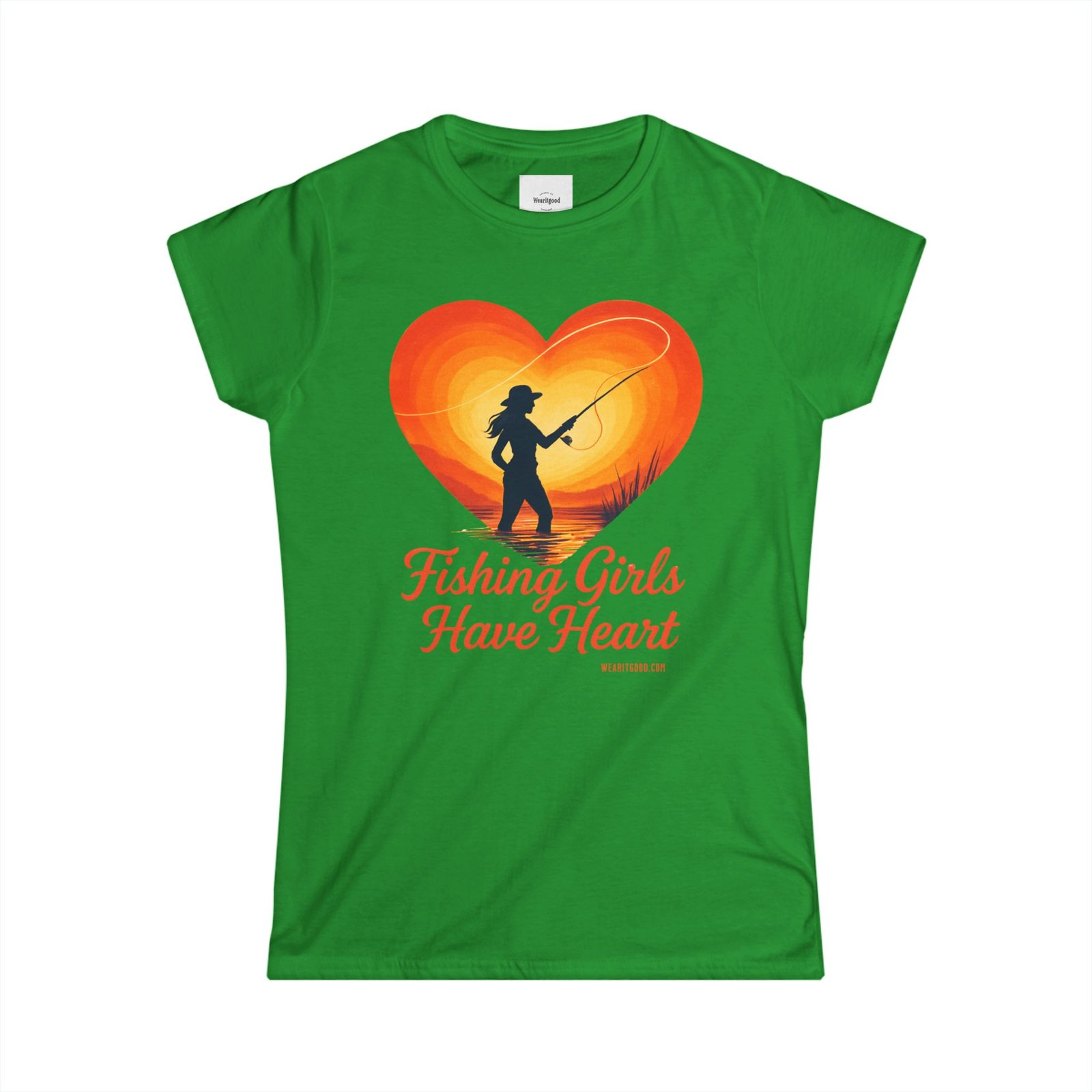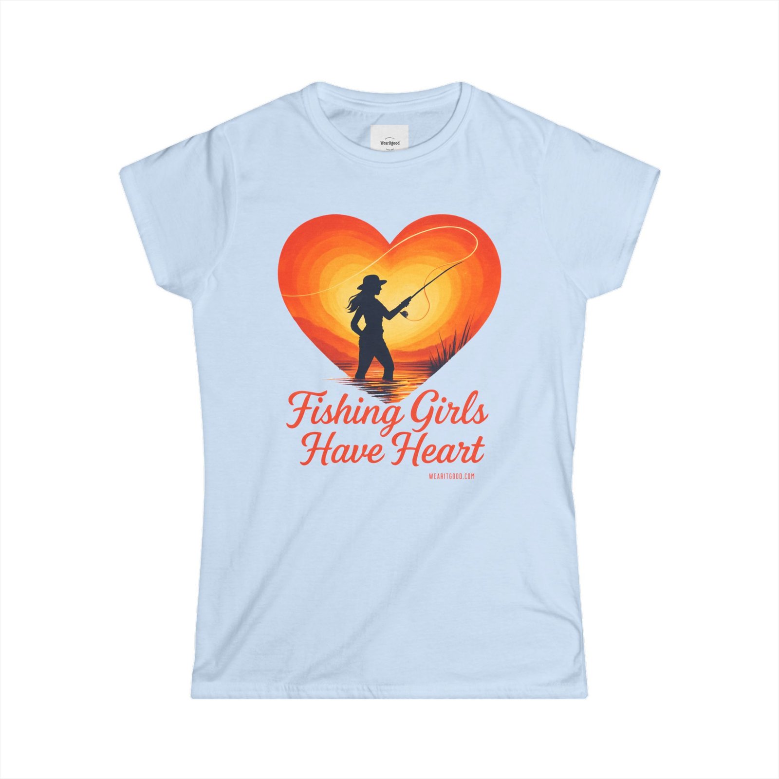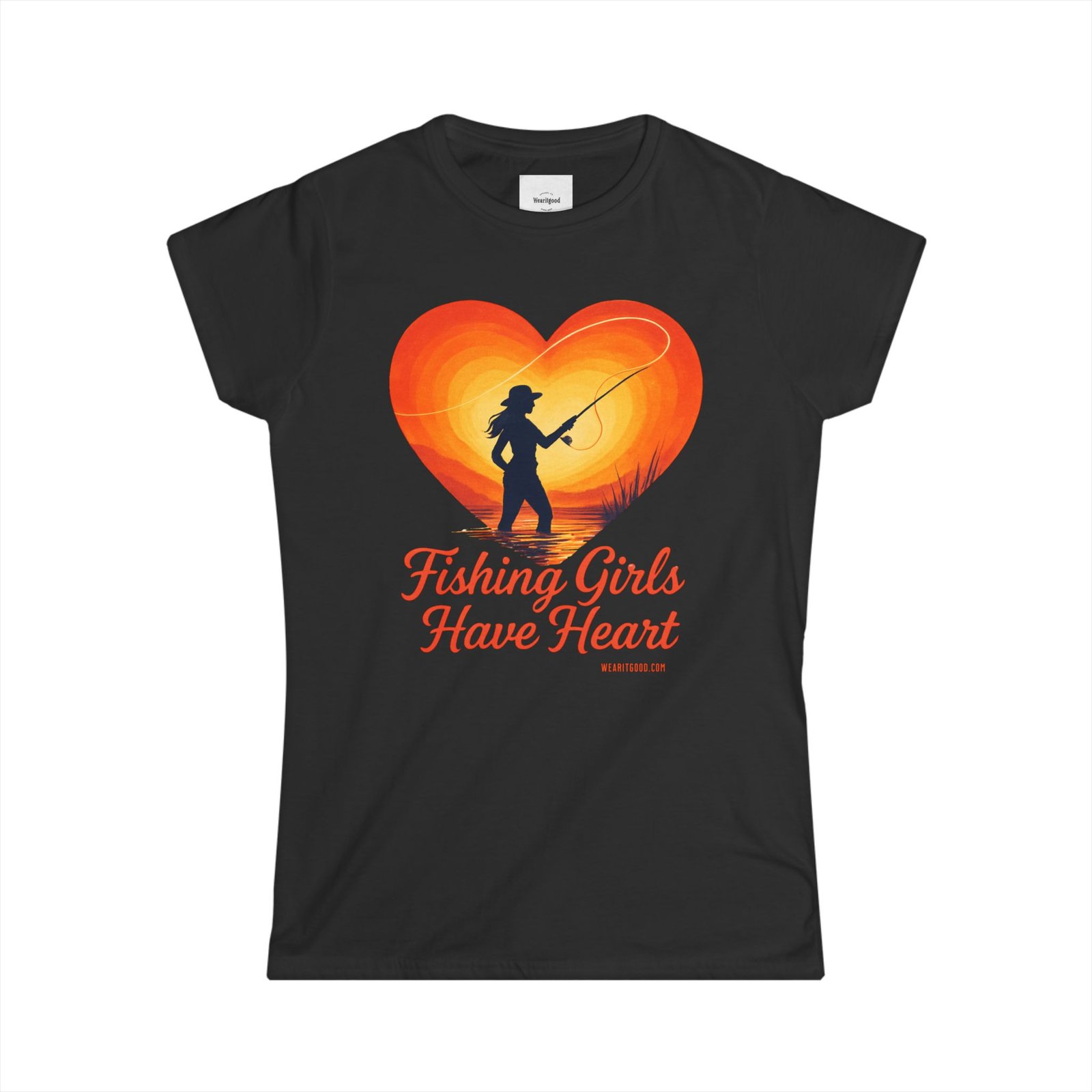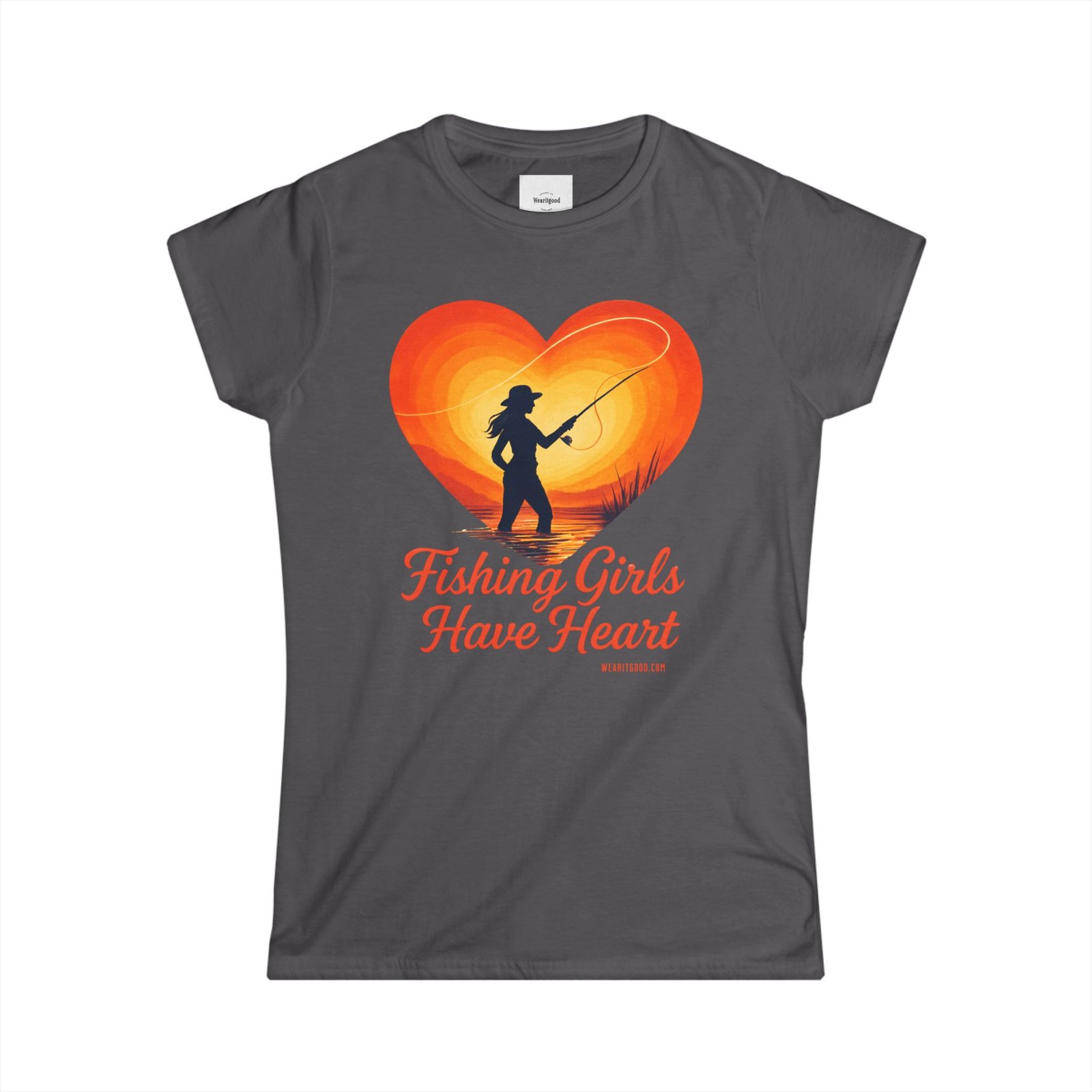 Fishing Girls Have Heart soft, sun-warmed cotton meets quiet mornings on the water. This slim, semi-fitted tee carries a warm, retro heart graphic with a silhouette of a woman casting a line — a gentle nod to the slow, steady joy of fishing. It sits close enough to layer under a flannel or wear alone while you untangle line, laugh with friends at the dock, or sip coffee before the first cast. The light fabric drapes comfortably, keeping you cool during long, golden-hour sessions. Subtle details like a ribbed collar and side seams mean this shirt keeps its shape wash after wash, while the tear-away label stays out of the way during long days outdoors. Wear it to feel connected to quiet rivers, early sun, and the steady rhythm of reeling in what matters.
