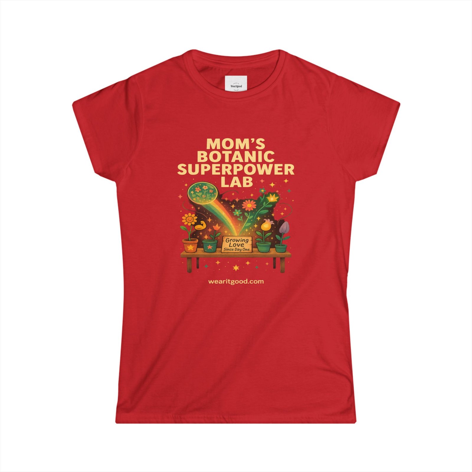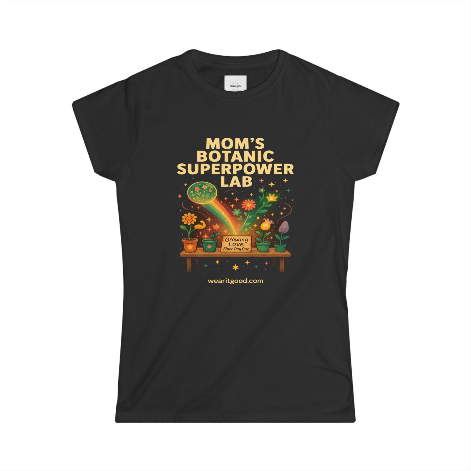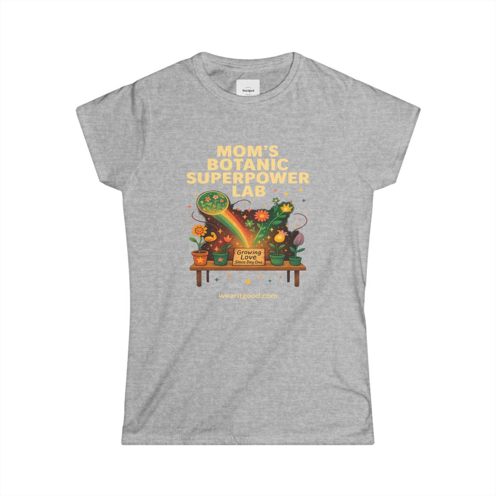 Mother’s Day soft, semi-fitted tee brings a playful, green-thumbed energy to everyday wear. The front art reads “Mom’s Botanic Superpower Lab” above a warm, illustrated potting bench—potted plants, watering cans, glowing leaves, and little gardening tools creating a cozy, workshop vibe. Lightweight ringspun cotton and a tear-away label keep the shirt comfortable for long afternoons […]