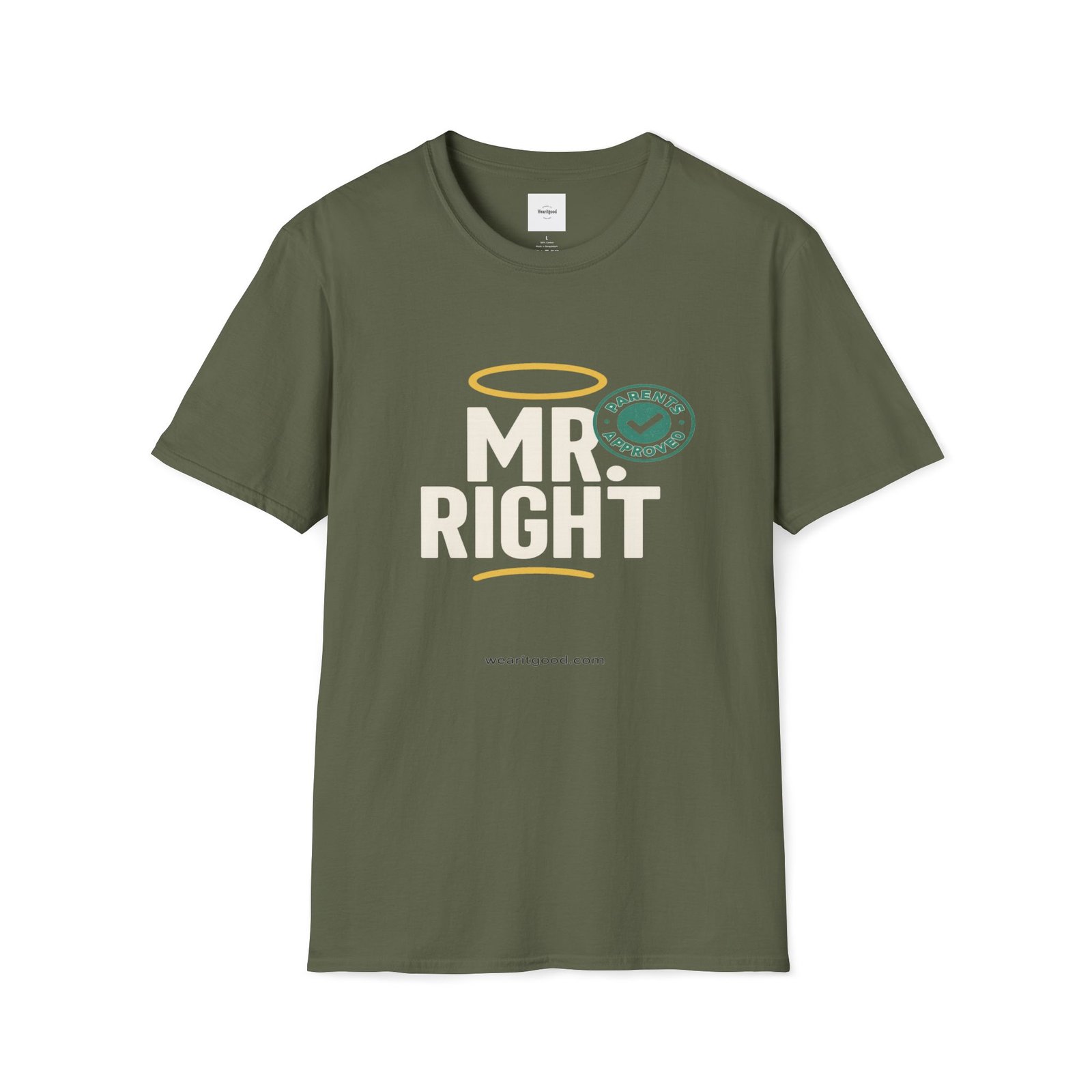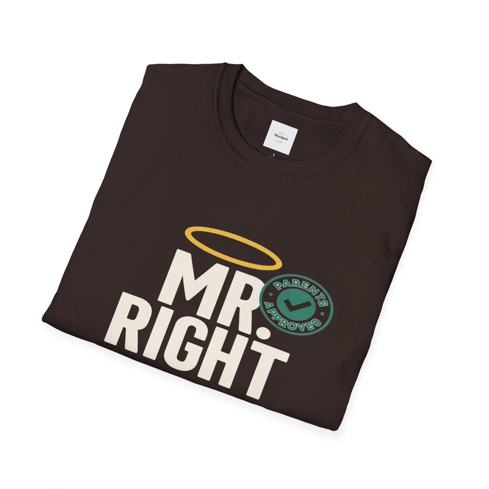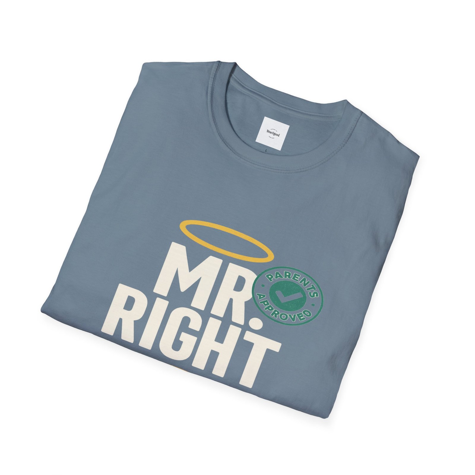 This lightweight crewneck tee carries a playful, confident vibe — the bold “MR RIGHT” lettering, halo motif and small emblem read like a wink from someone sure of themselves. Soft, smooth ring-spun cotton feels easy against the skin and drapes cleanly in the classic fit. Wear it with jeans for a relaxed date-night look, layer under a jacket for a casual office day, or pack it for weekend travel — it’s comfortable, low-fuss, and made to keep its shape through repeated wear. The subtle natural fleck option and durable print methods preserve the design’s character while staying breathable and comfortable all year round.
